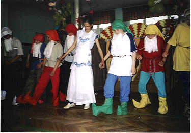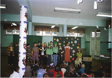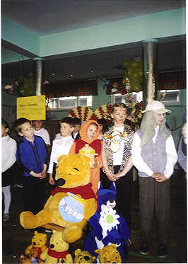 Każda klasa przedstawiła krótką prezentację wybranej bajki, a dzieci mogły popisać się swymi aktorskimi umiejętnościami. Na tle wspaniałych bajkowych dekoracji rozbrzmiewały nuty znanych wszystkim dzieciom piosenek oraz fragmenty bajek, baśni i bajeczek. Zaangażowanie dzieci i włożony wysiłek zostały nagrodzone gromkimi brawami licznie zgromadzonych gości. |